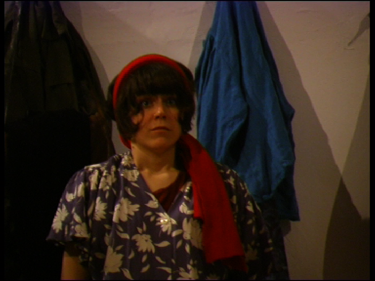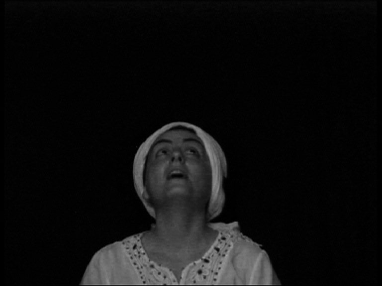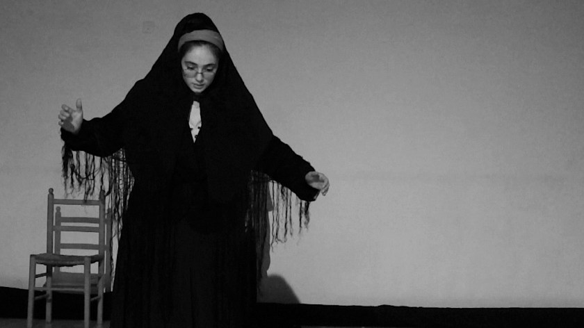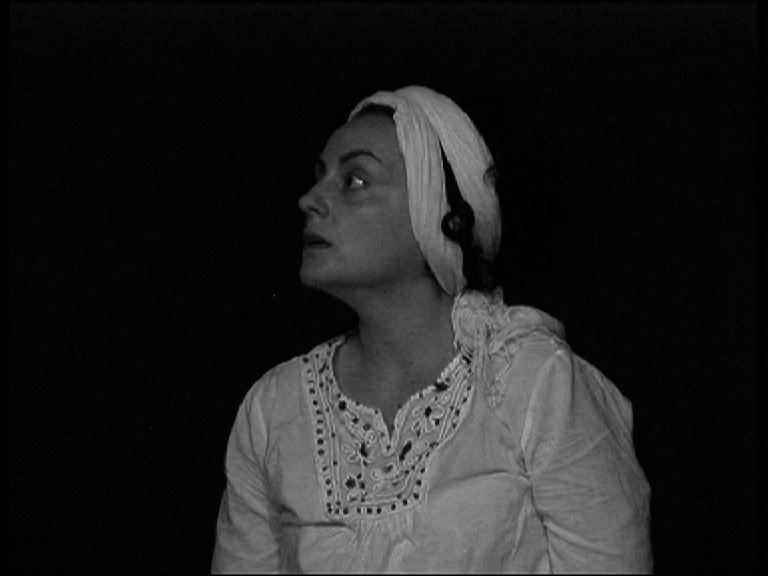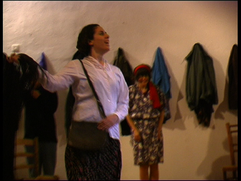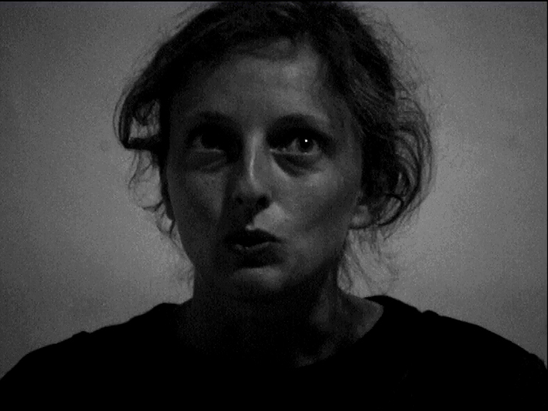 Serena si alza fa due passi avanti apre la bocca, gesti a destra e a sinistra come per chiamare le parole.