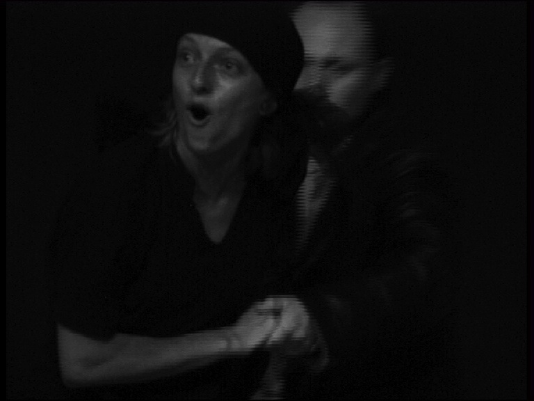 Nei due testi, una domanda ricorrente:”Dove siamo?”, ripetuta tante volte, senza trovare risposta. Ma alla fine non cercano più di sapere. Sono lì. Nei due testi l’apparizione della neve. La recitazione chorale del testo di Walser “Nevicata” viene fuori come una ballata , che fa bene a sentire, con la neve che comincia a scendere e non si ferma più. Si coricano a terra, delicatamente, la neve di Walser continua a scendere, e viene una sorta di pace, di riconciliazione: