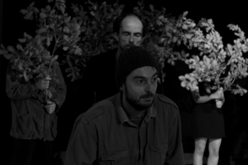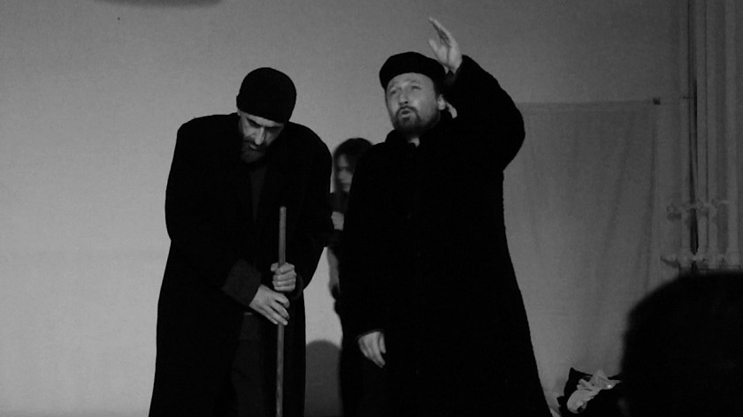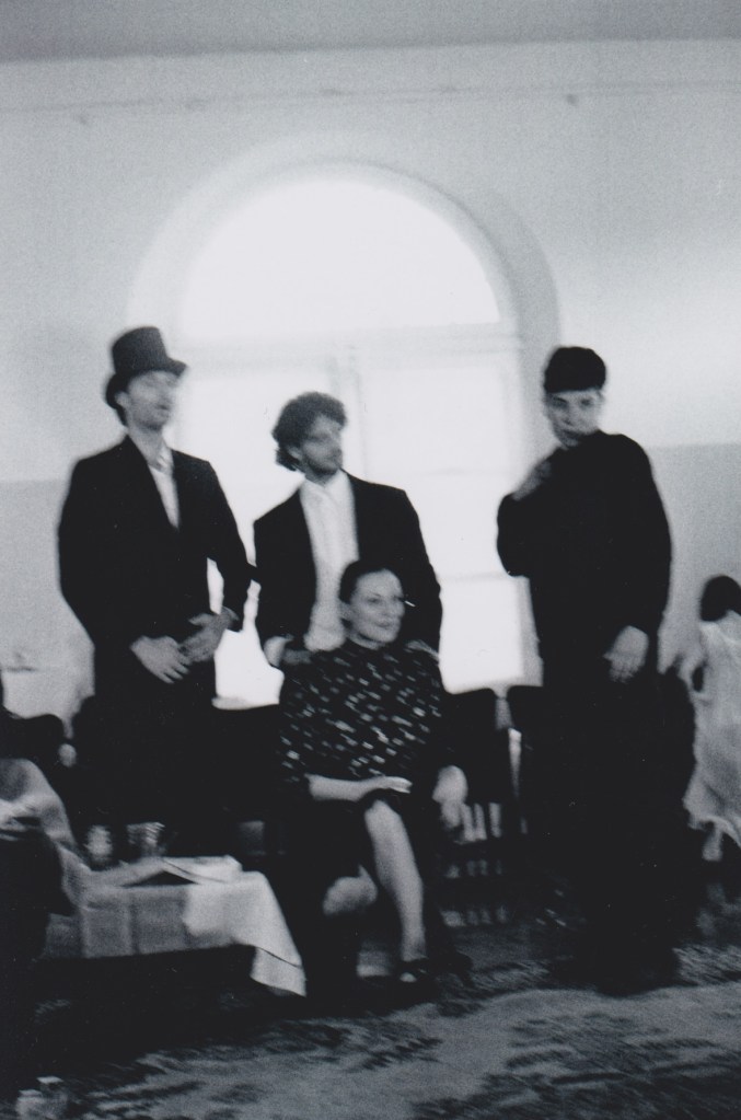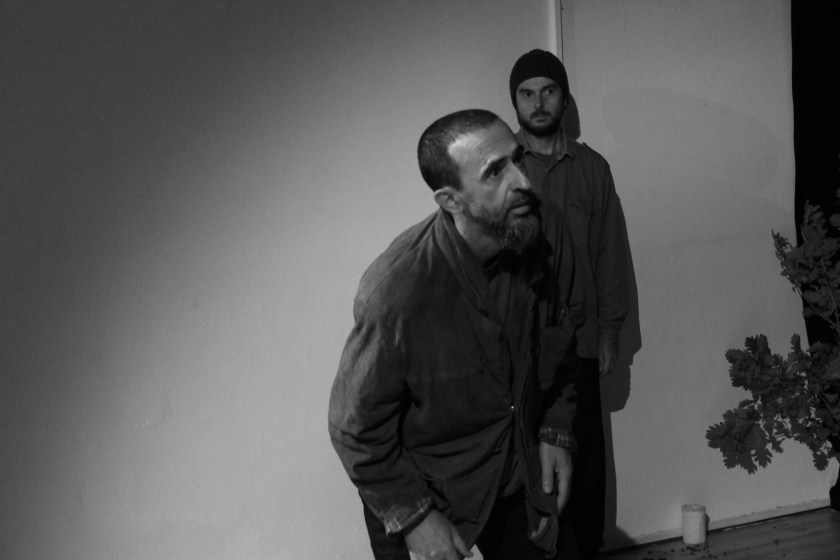 The place where they find themselves has no characteristics, it is a non-place, a nowhere. Two dialogues in several voices open and close their appearance: a fragment of Maeterlinck’s text “The Blind Men” and a fragment of Jon Fosse’s text “Sleep, my child”.